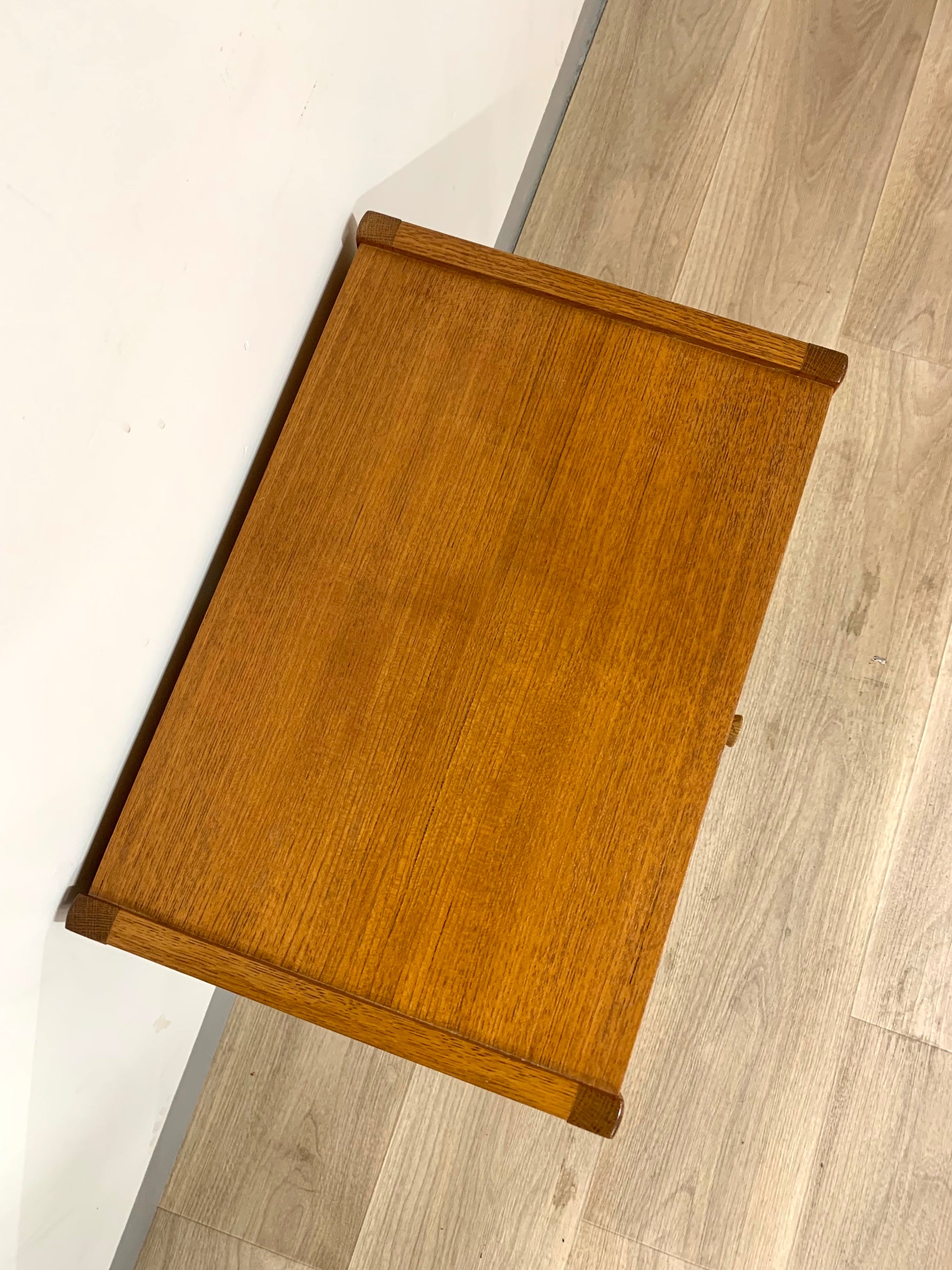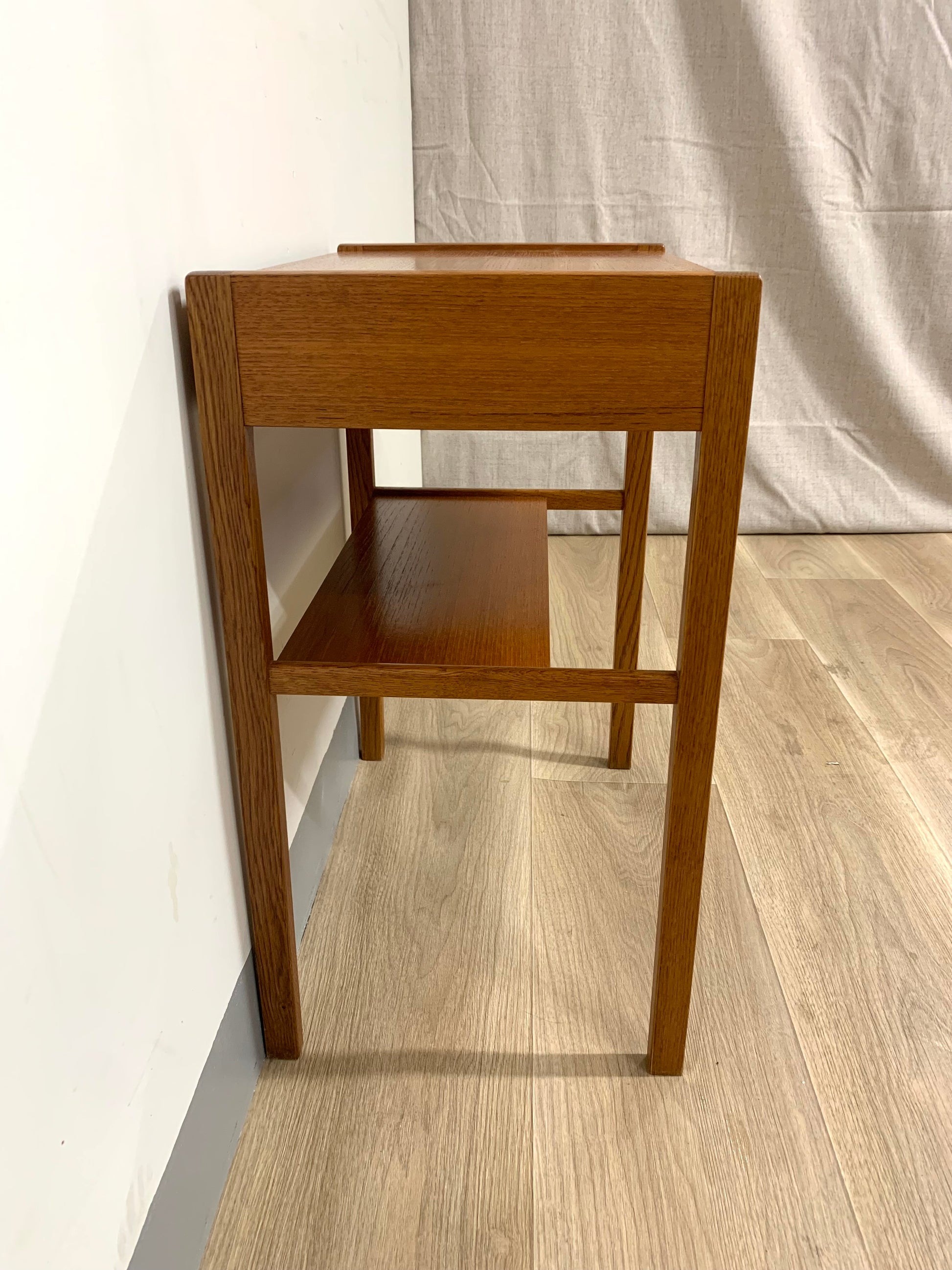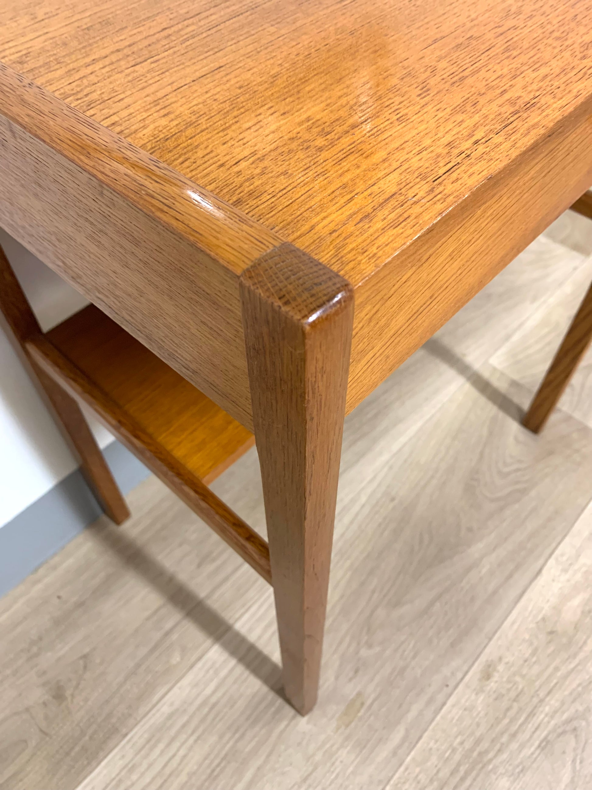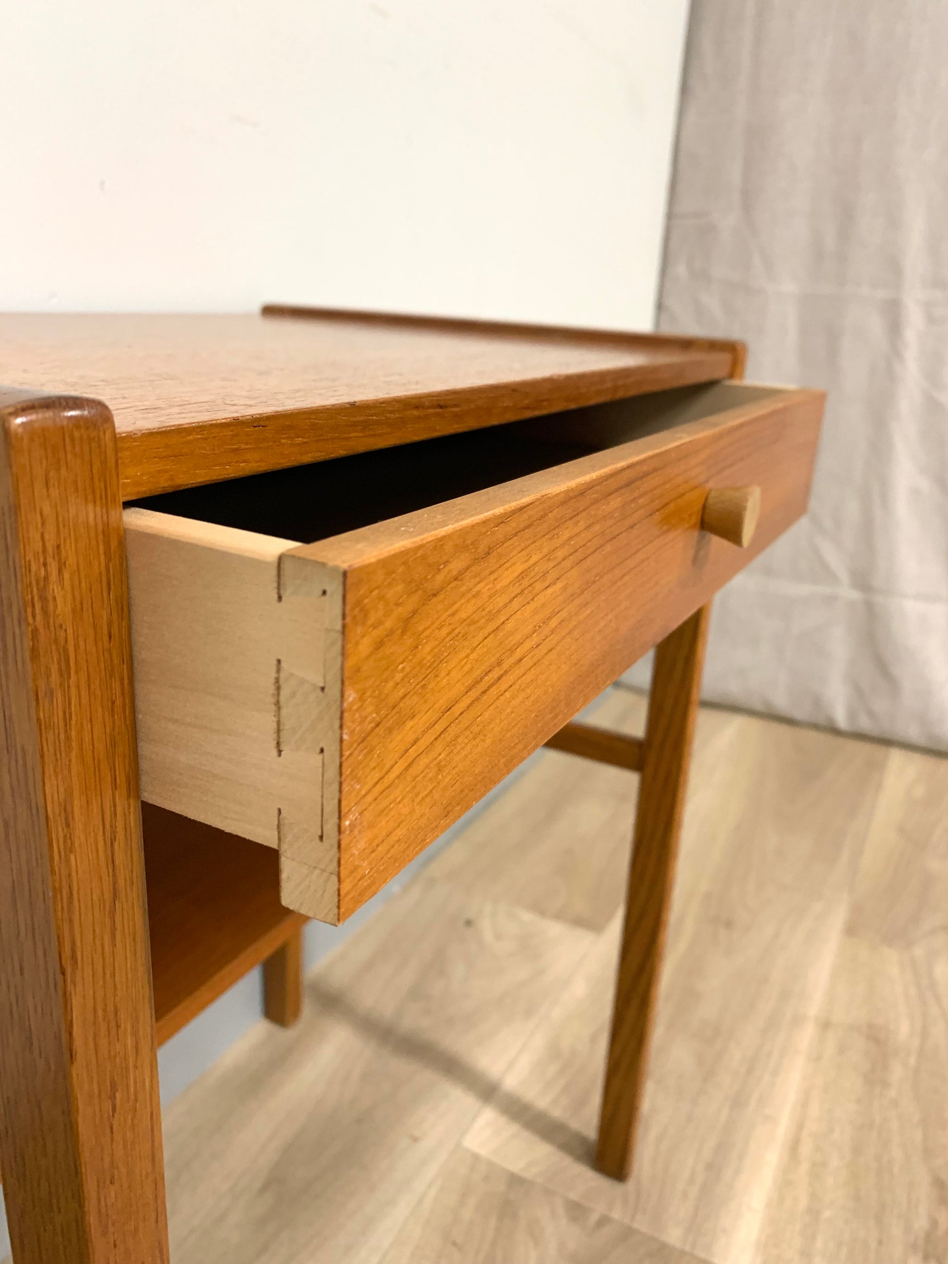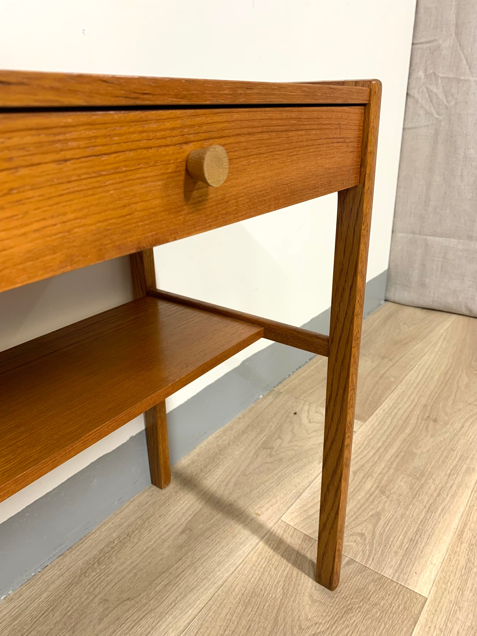 Details: Compact and functional design with one drawer, an open lower shelf, and straight legs. The round wooden drawer pull adds a subtle touch.